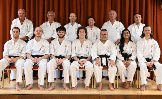 On Saturday 30 April 2022 a Dan grade examination was held at Shotgate Community Hall in Wickford, Essex. Six students from the Essex group of clubs run by Sensei Barry Coles were successful in achieving ranks ranging from 1st Dan to 4th Dan. Family and friends also attended the event to support the examinees from the Basildon and Rawreth clubs. Ross Jordan, Adam Palmer and Jack Solder were awarded 1st Dan, Darren Akers and Euan Weatherley, 2nd Dan and Reggie Went, 4th Dan. Rodolfo Picciau from Kent took his place with the rest of the grading panel members for the first time after recently being made a Senior Member of the Association.